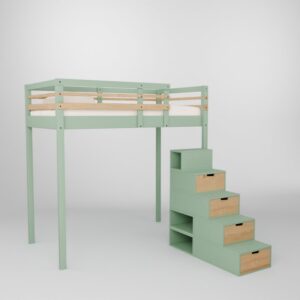 Lit mezzanine teintée 90×190 enfant « Jeune Urbaine » avec « escalier de rangement Brick it »