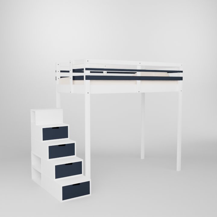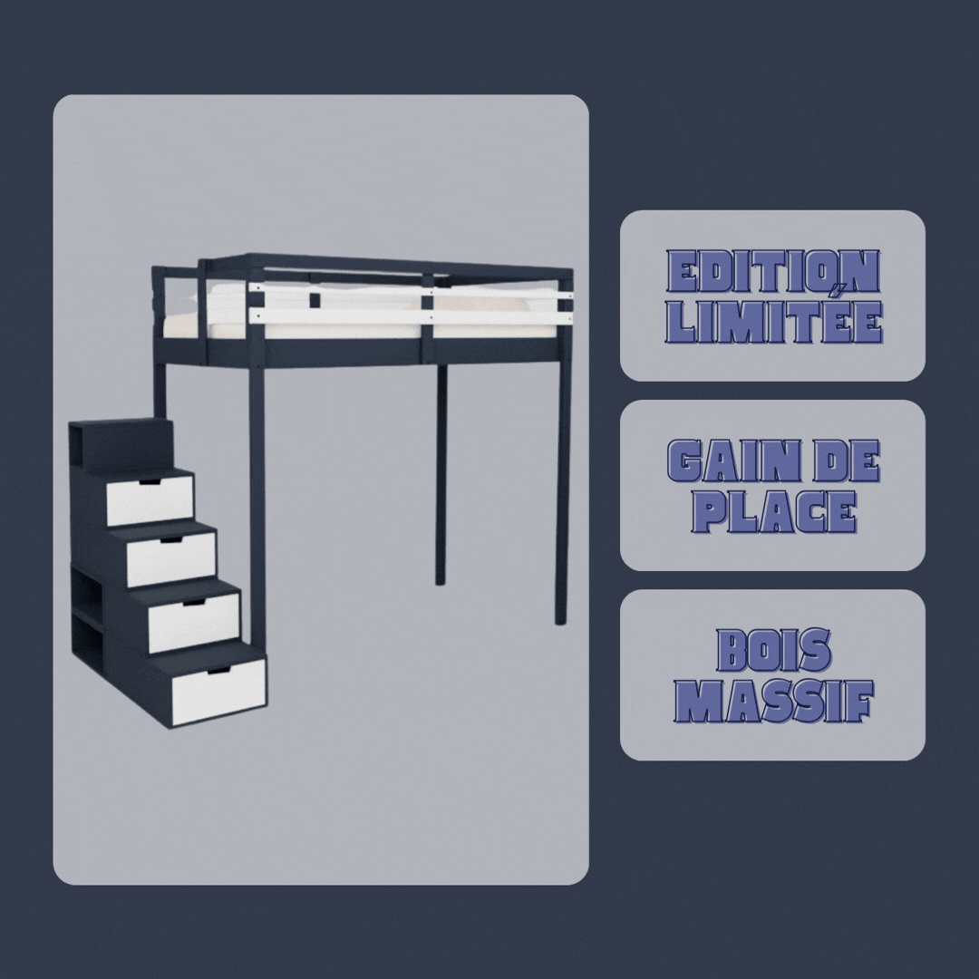 Le lit mezzanine avec escalier Brick en édition limitée bleu astral et blanc transforme la chambre en un espace à la fois fonctionnel, élégant et optimisé. Conçu pour répondre aux besoins des petits espaces comme des chambres contemporaines, ce modèle allie solidité, confort et design exclusif.