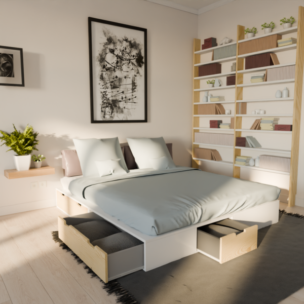 Conçu pour s’adapter à chaque intérieur, le lit podium se distingue par sa grande modularité. Les différents modules de rangement peuvent être combinés selon les besoins et la configuration de la pièce, offrant une solution personnalisable et évolutive. Chaque élément est pensé pour faciliter l’usage quotidien, avec des accès simples et une organisation optimisée.