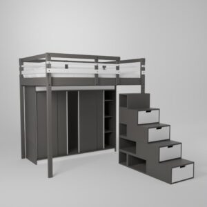 Lorsqu’on partage une chambre en deux, trouver suffisamment de rangement n’est pas simple. Notre ensemble lit mezzanine avec armoire est idéale pour que chacun puisse trouver sa place dans la pièce. La dimension de notre armoire est parfaitement adaptée à votre lit pour créer un véritable espace dressing sous le couchage.